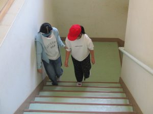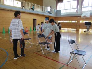 体験後は,「階段の誘導が上手く出来なかったので,また機会があればやってみたい」「介助者の誘導のお蔭で安心して体験出来た」「視覚に障がいのある方の生活が大変なことが分かった」「介助者が上手く誘導してくれなかったので怖かった」「視覚に障がいのある方にとって介助者は必要だと思った」「私たちが普通に歩いている道もアイマスクを着けると怖かった」「言葉で伝える介助が難しかった」など,様々な感想が発表され,体験したからこその気付きを得ていただけたと思いました。
