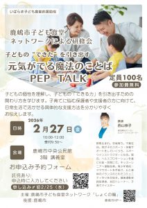 子どものできたを引き出す 「元気がでる魔法のことばPep Talk」 が開催されます!